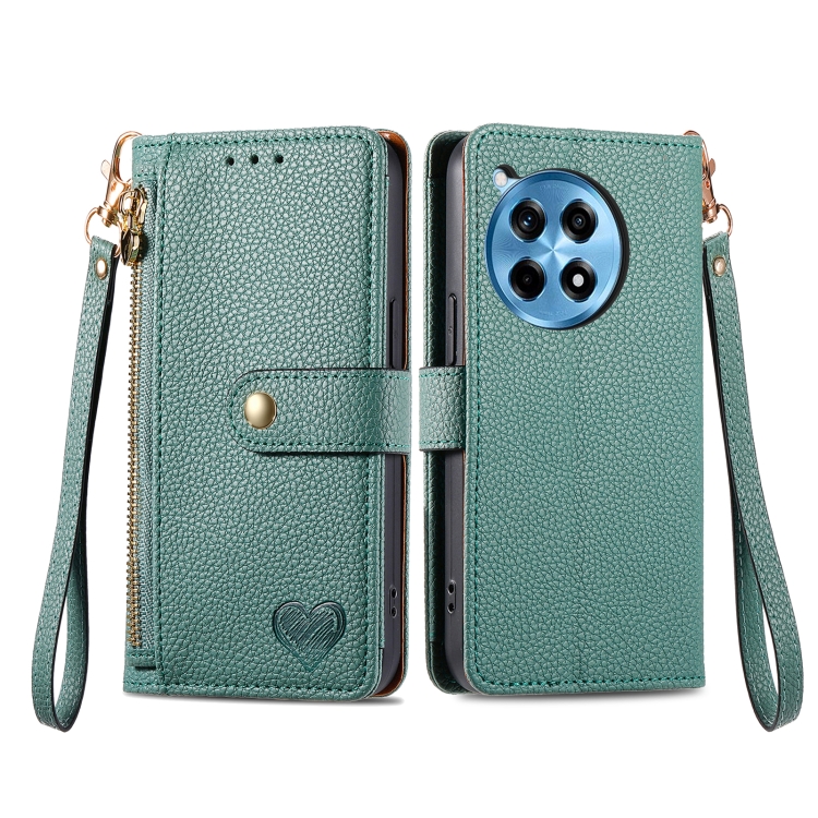 Funda de Cuero con Cordón y Cremallera Love para OnePlus Ace 3 Pro (Verde)