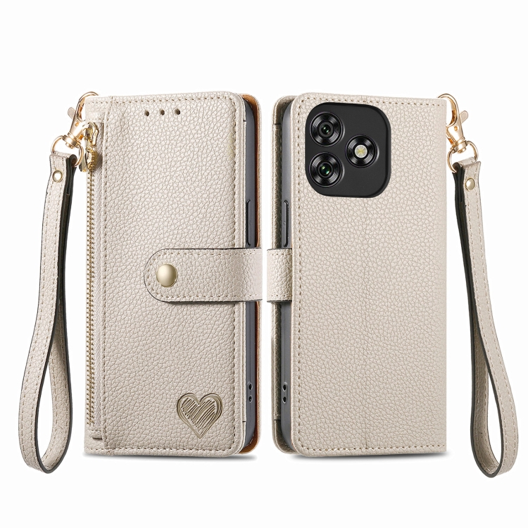 Funda de Cuero con Cordón y Cremallera Love para Oukitel C53 (Gris)