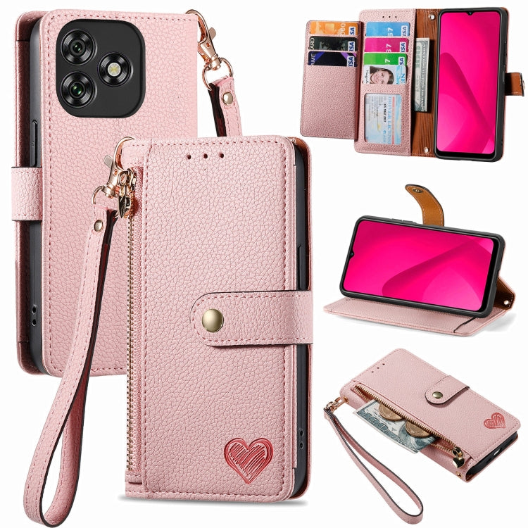 Funda de Cuero con Cordón y Cremallera Love para Oukitel C53 (Rosa)