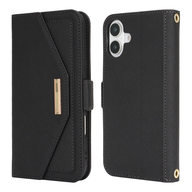 Funda de Cuero con Cordón y Textura Cruzada para iPhone 16 (Negro)
