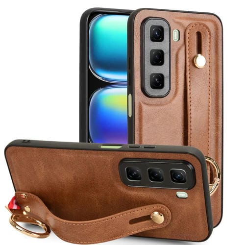 Funda de Cuero con Correa para El Brazo para Infinix Hot 50 4G (Marrón)