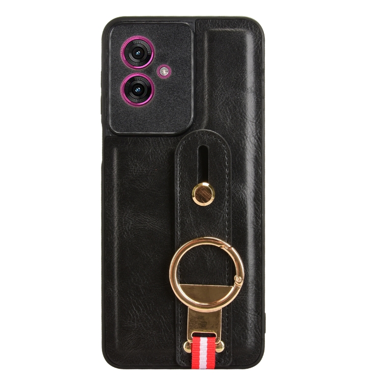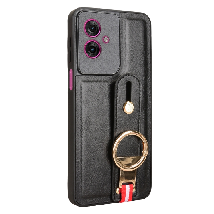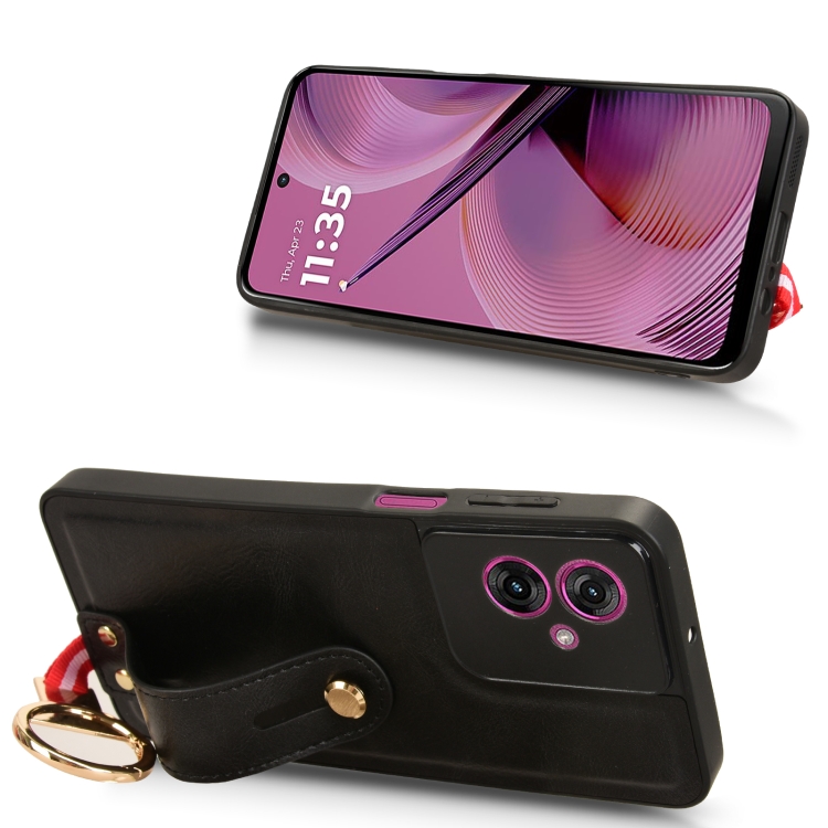 Funda de Cuero con Correa para el Cuello Motorola Moto G55 5G (Negro)