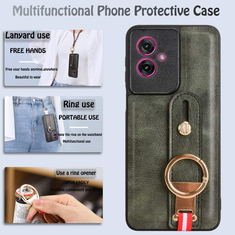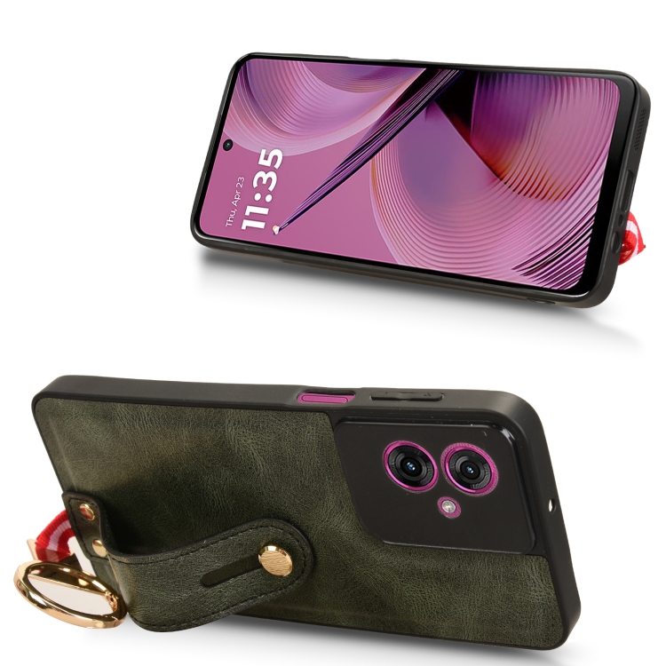Funda de Cuero con Correa para el Cuello Motorola Moto G55 5G (Verde)