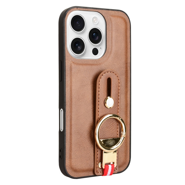 Funda de Cuero con Correa para la Muñeca para iPhone 16 Pro (Marrón)