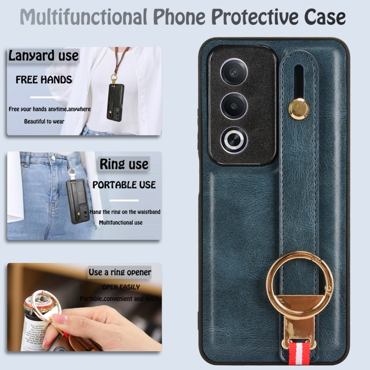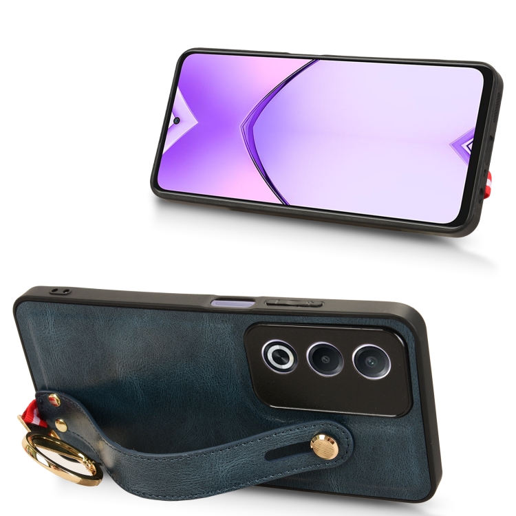 Funda de Cuero con Correa para la Muñeca para Oppo K12X 5G/A3 Pro Global (Azul)