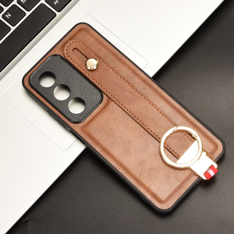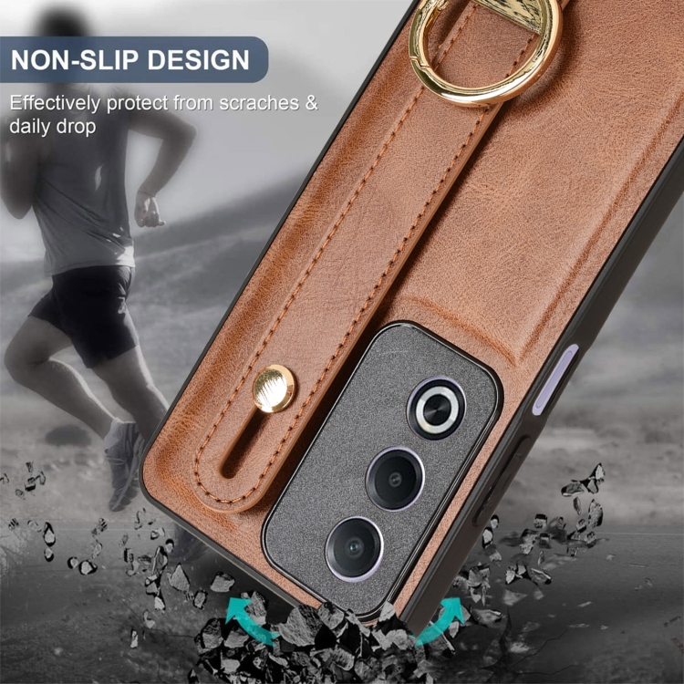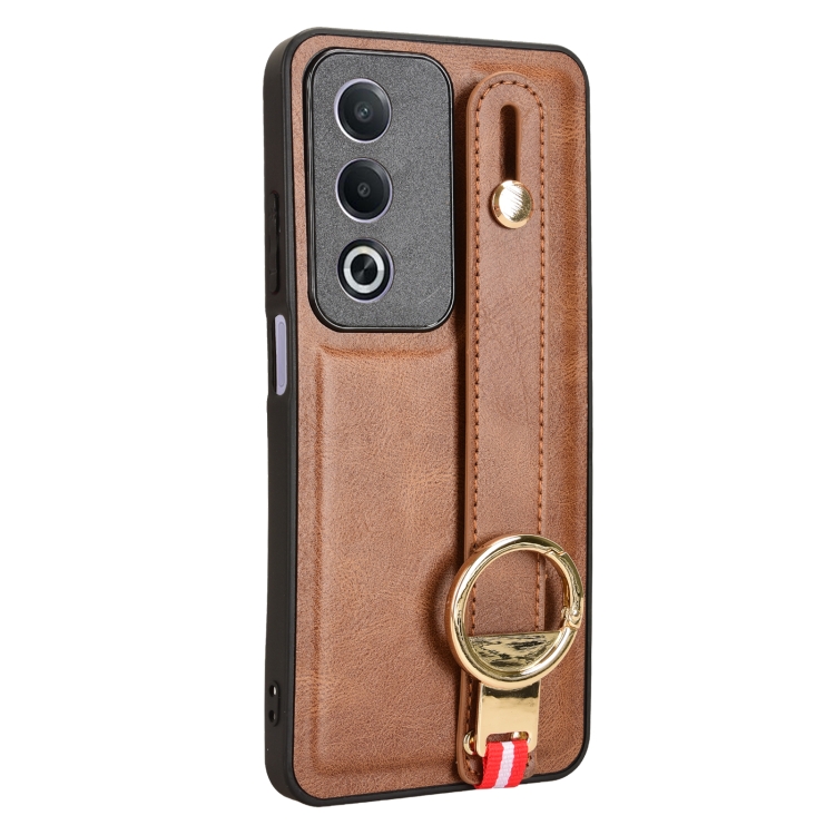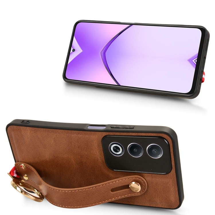 Funda de Cuero con Correa para la Muñeca para Oppo K12X 5G/A3 Pro Global (Marrón)
