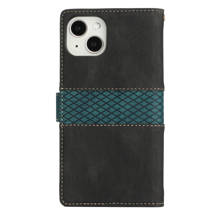 Funda para iPhone 13 Mini Cuero Costuras de Cuadrícula con Cordón (Negro)