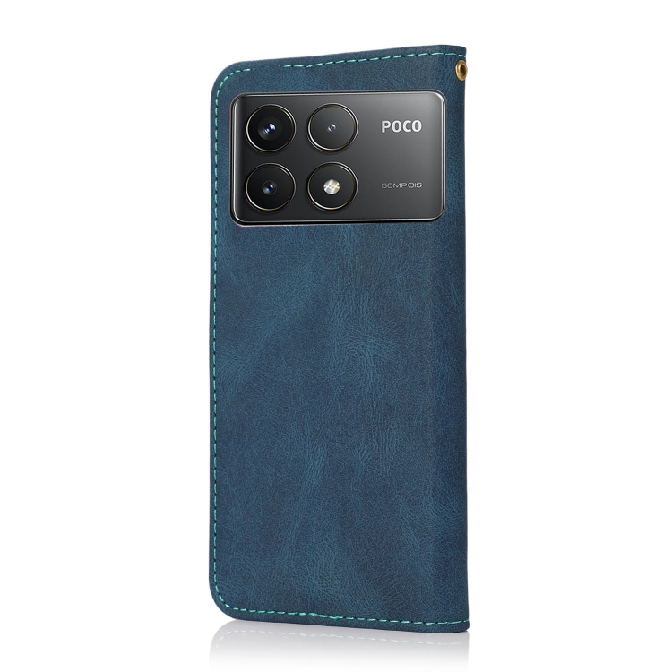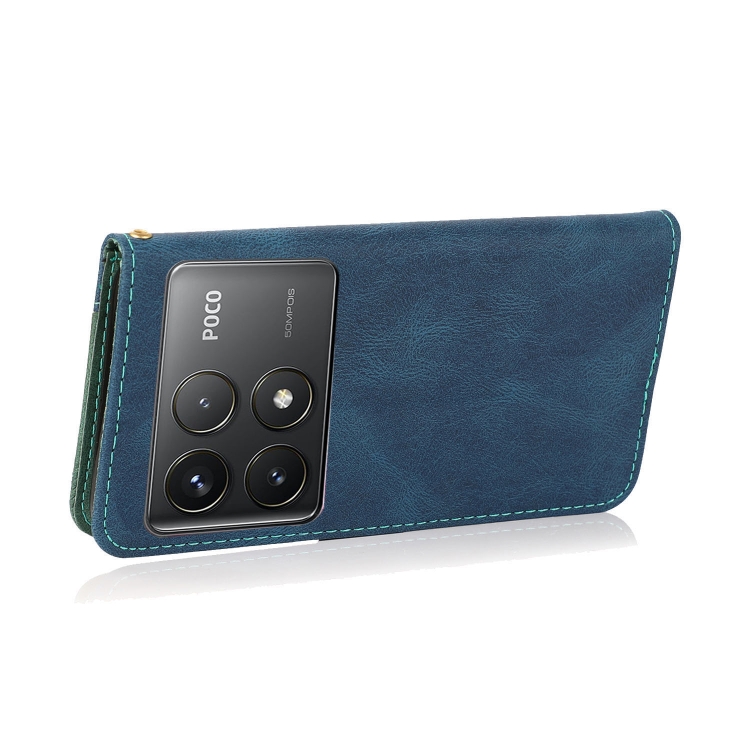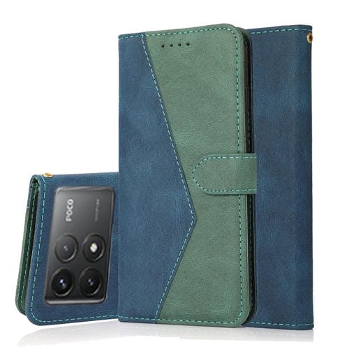 Funda de Cuero con Costuras de Dos Colores para Teléfono Xiaomi Poco F6 Pro (Azul y Verde)