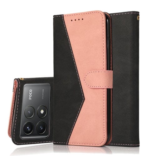 Funda de Cuero con Costuras de Dos Colores para Teléfono Xiaomi Poco F6 Pro (Oro Rosa Negro)