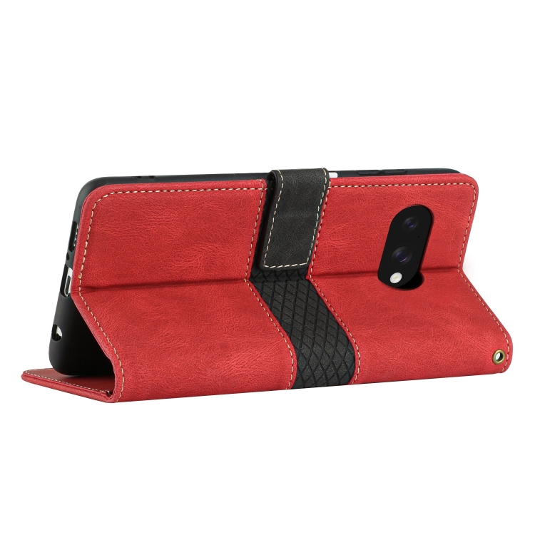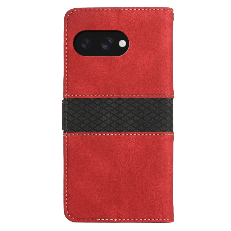 Funda de Cuero con Costuras en Cuadrícula para Google Pixel 9A con Cordón (Rojo)