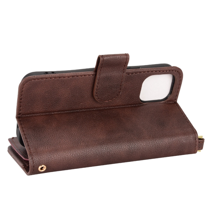 Funda de Cuero con Cremallera para iPhone 12 Mini Litchi Texture (Marrón)