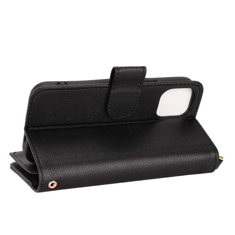 Funda de Cuero con Cremallera para iPhone 12 Mini Litchi Texture (Negro)
