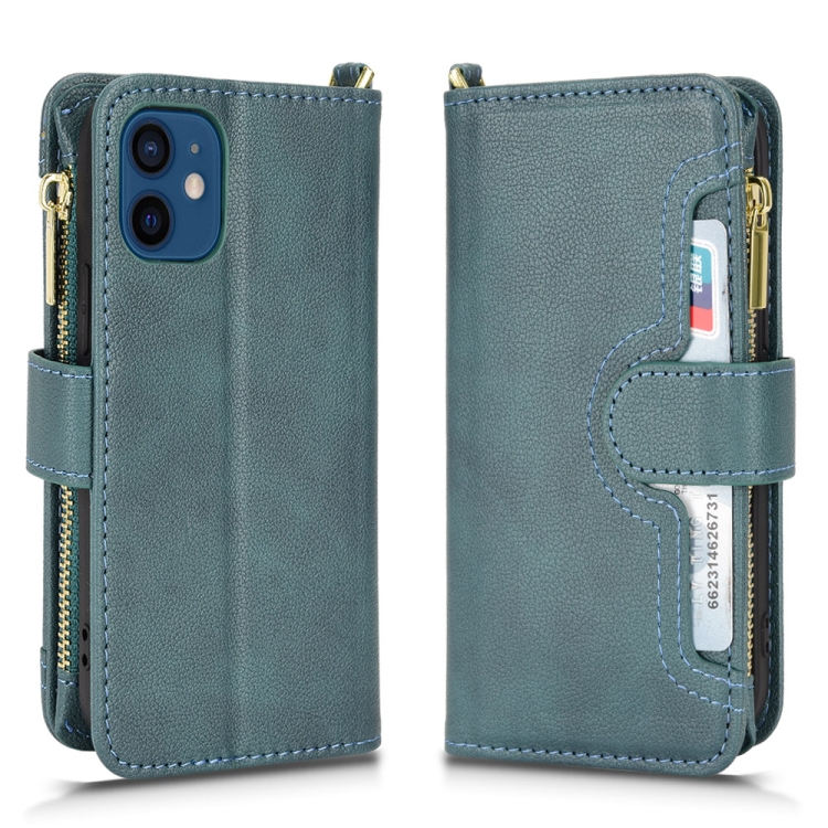 Funda de Cuero con Cremallera para iPhone 12 Mini Litchi Texture (Verde)