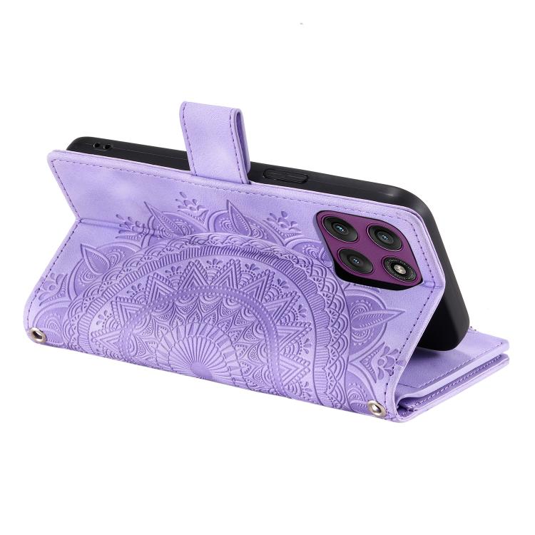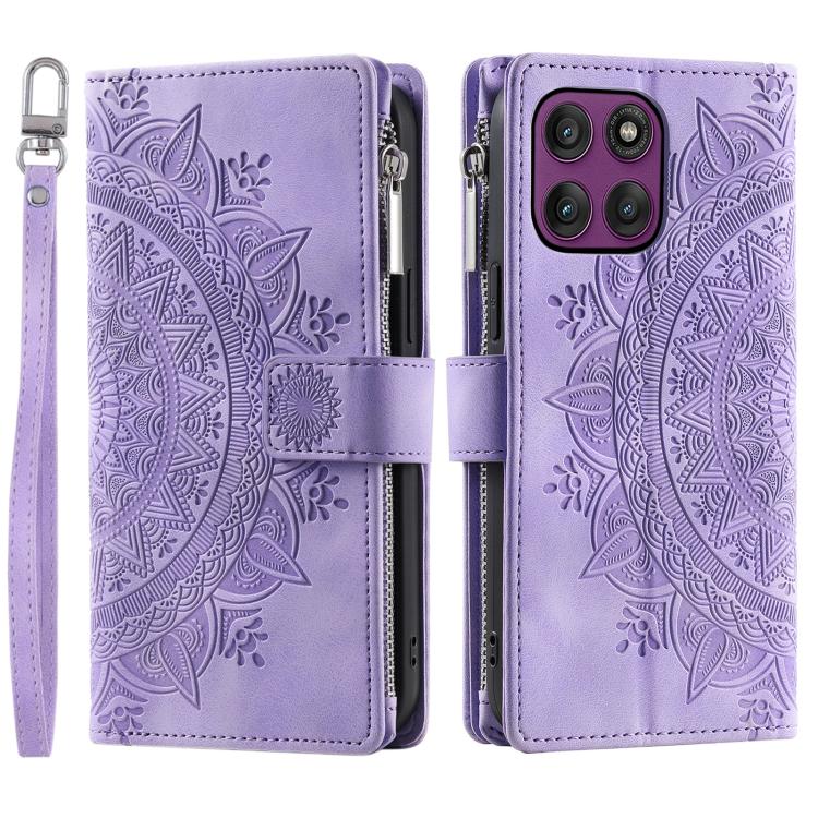 Funda de cuero con cremallera para Motorola Edge 60 Pro (morada)