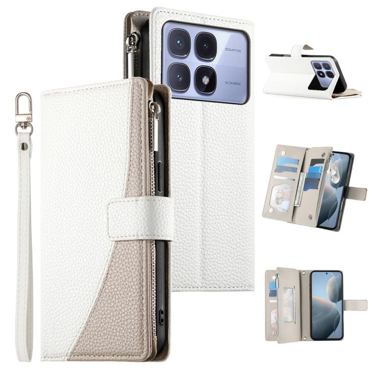 Funda de cuero con cremallera para Redmi K70 Ultra, con múltiples tarjetas y costuras, con correa corta (blanca)