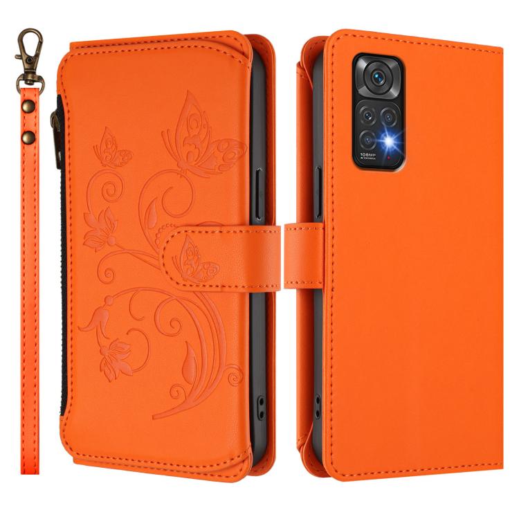 Funda de cuero con cremallera para Redmi Note 12S / Redmi Note 11S 4G, diseño de mariposas, flores y mariposas (naranja)