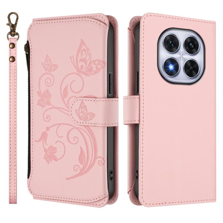 Funda de cuero con cremallera para Redmi Note 14 Pro 4G, diseño de mariposas, flores y mariposas (rosa)