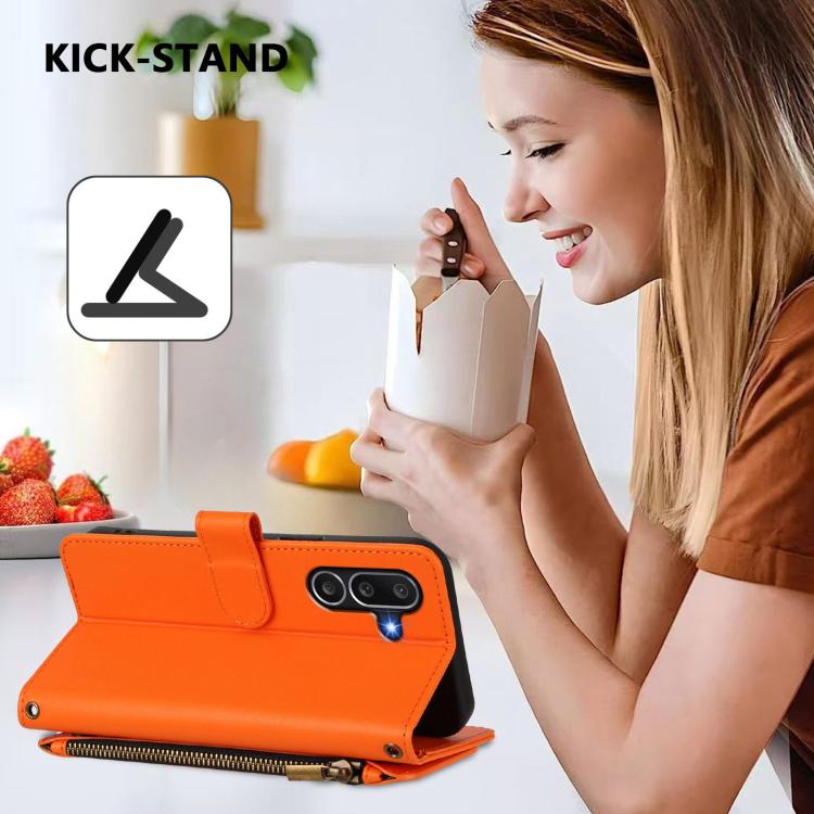 Funda de cuero con cremallera para Samsung Galaxy M56 5G, diseño de mariposas, flores y amor, con múltiples tarjetas (naranja)