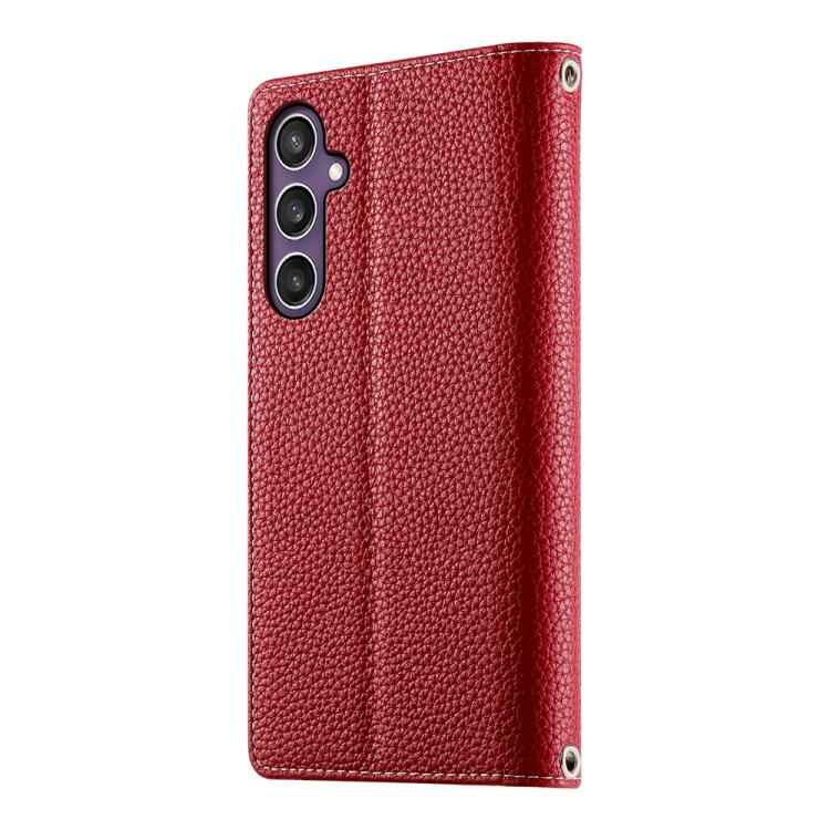 Funda de cuero con cremallera para Samsung Galaxy S23 FE 5G, con costuras, múltiples tarjetas y correa corta (roja)