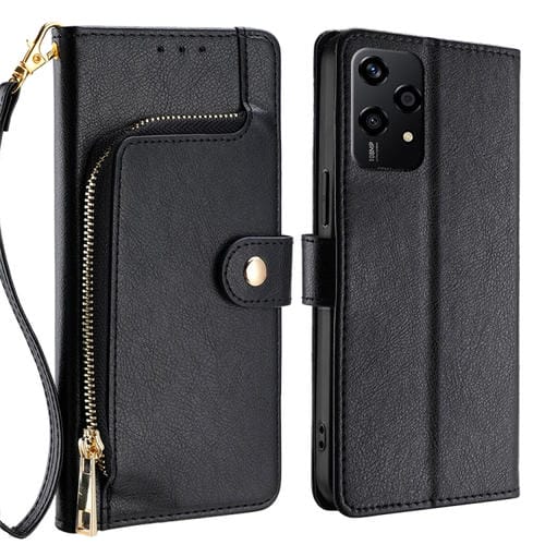 Funda de Cuero con Cremallera para Teléfono Honor 200 Lite 5G (Negro)