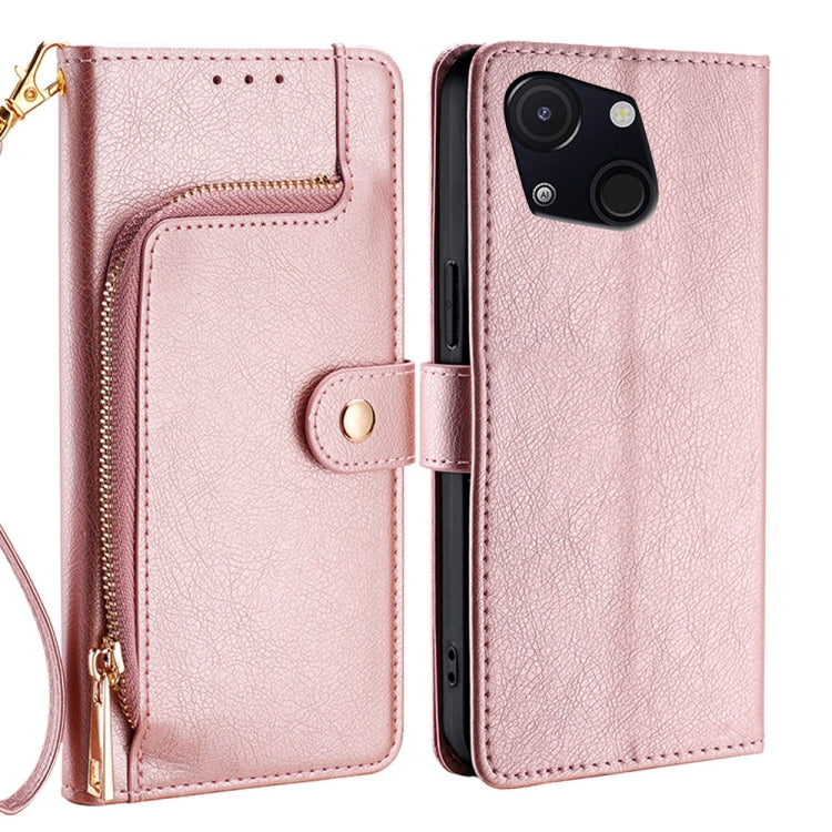 Funda de Cuero con Cremallera para Teléfono Itel A50C 4G (Oro Rosa)