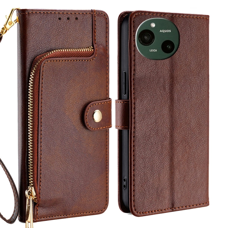 Funda de Cuero con Cremallera para Teléfono Sharp Aquos R9 (Marrón)