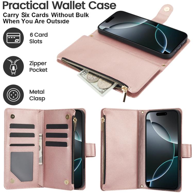 5. Función de cartera multitarjeta: Múltiples ranuras para tarjetas y bolsillos con cremallera, compartimentos para efectivo para guardar tarjetas de crédito y billetes pequeños.