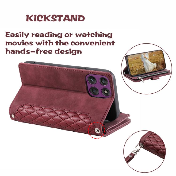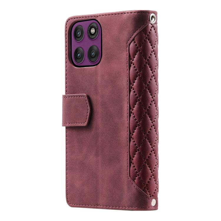 Funda de cuero con cremallera y cordón para Motorola Edge 60 Pro (rojo vino)