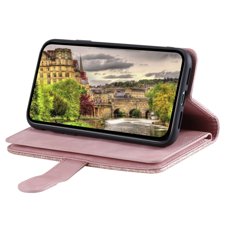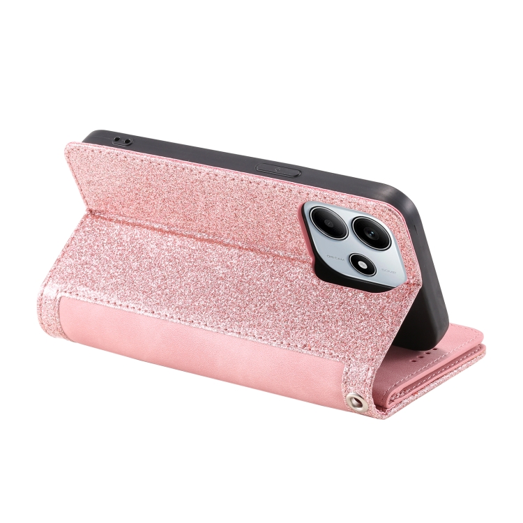 Funda de Cuero con Cremallera y Cordón para Xiaomi Redmi Note 14 5G, con Nueve Tarjetas, Color Rosa