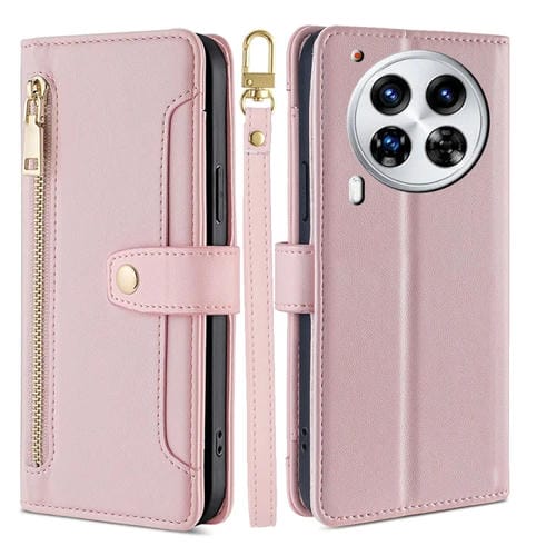 Funda de Cuero con Cremallera para Teléfono Tecno Camon 30 Premier 5G con Diseño Cruzado (Rosa)