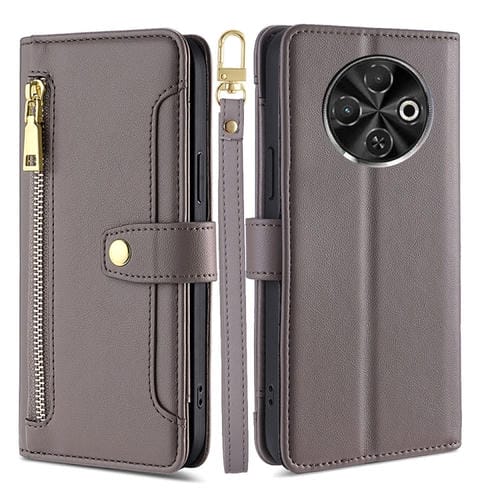Funda de Cuero para Tecno Spark 30C 4G con Cremallera y Diseño Cruzado (Gris)