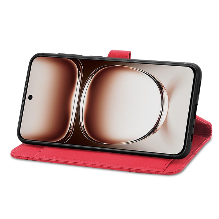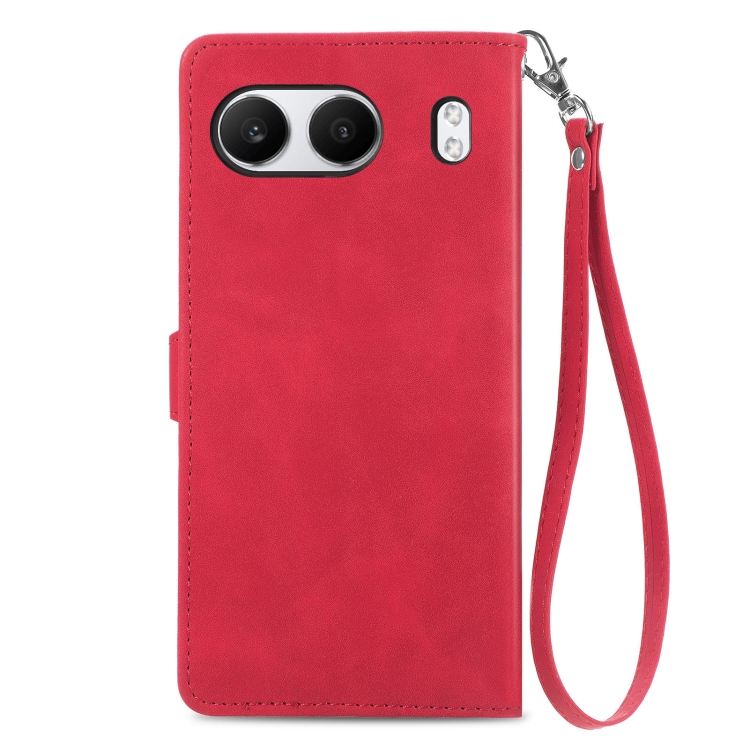 Funda de Cuero con Cremallera y Flores en Relieve para OnePlus Nord 4 (Rojo)