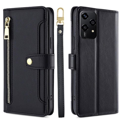 Funda de Cuero con Cremallera y Diseño de Ovejas para Honor 200 Lite 5G (Negro)