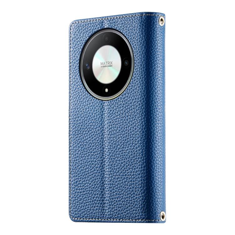 Funda de cuero con cremallera y múltiples tarjetas para Honor X50/Honor X9b, con costuras y correa corta (azul oscuro)