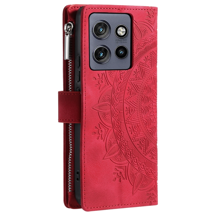 Funda de Cuero con Cremallera y Múltiples Tarjetas para Motorola Edge 50 Neo (Rojo)