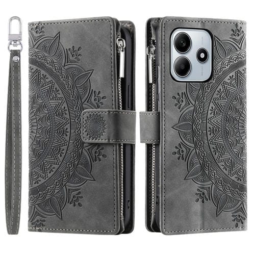 Funda de Cuero con Cremallera y Múltiples Tarjetas para Xiaomi Redmi Note 14 5G (Gris)