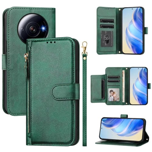 Funda de Cuero con Cremallera y Ranuras para Múltiples Tarjetas para Xiaomi 12S Ultra (Verde)