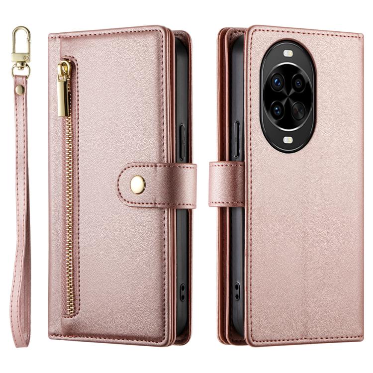 Funda de cuero con cremallera y ranuras para tarjetas para Huawei nova 14 Pro (rosa)