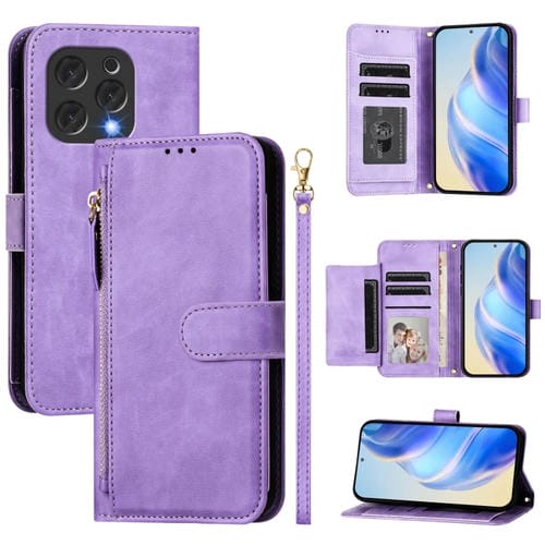 Funda de Cuero con Cremallera y Ranuras para Tarjetas para Doogee N55 Plus (Morado)