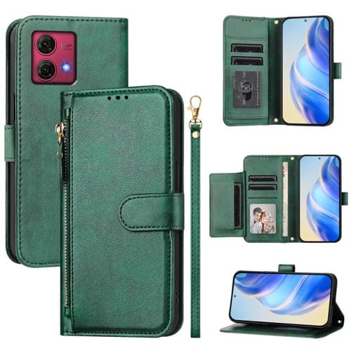 Funda de Cuero con Cremallera y Ranuras para Tarjetas para Motorola Moto G84 (Verde)