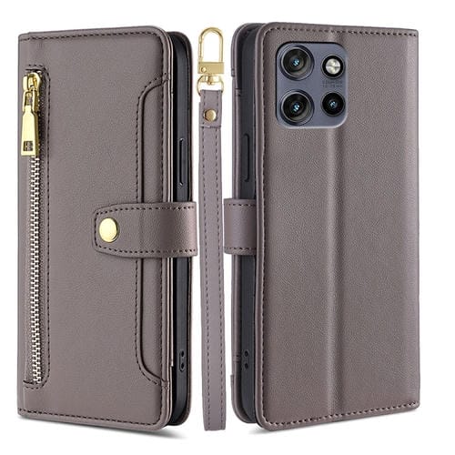 Funda de Cuero con Cremallera y Textura de Oveja para Motorola Edge 50 Neo 5G (Gris)