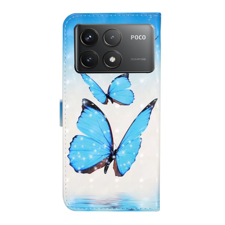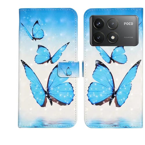 Funda de Cuero con Dibujo 3D En Relieve de Aceite para Xiaomi Poco F6 Pro (3 Mariposas)