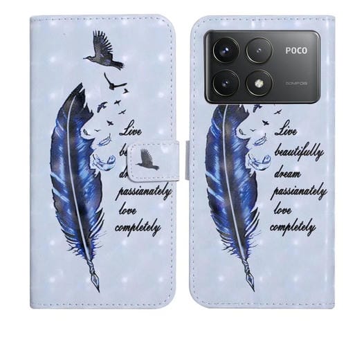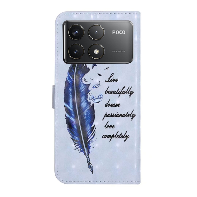 Funda de Cuero con Dibujo 3D En Relieve de Aceite para Xiaomi Poco F6 Pro (Pluma Azul)