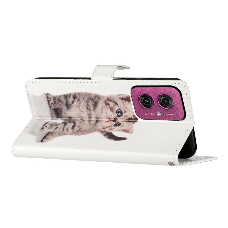 Funda de Cuero para Motorola Moto G55 con Dibujo a Color (Gato Atigrado)