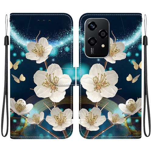 Funda de Cuero Honor 200 Lite con Dibujo a Color y Textura de Cristal (Magnolia)