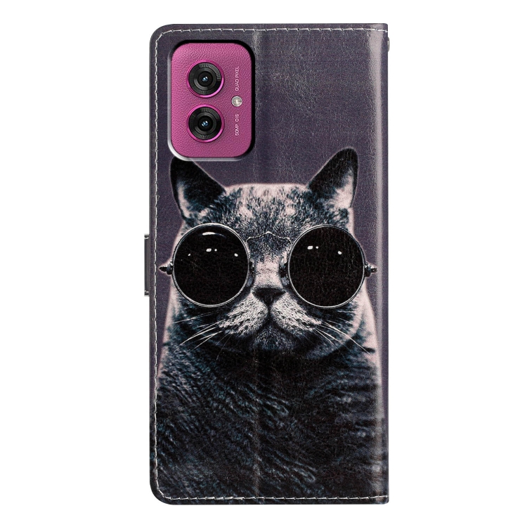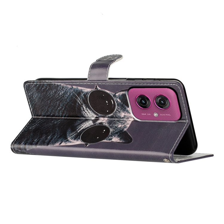 Funda de Cuero para Motorola Moto G55 con Dibujo de Colores (Gafas de Sol con Gato)