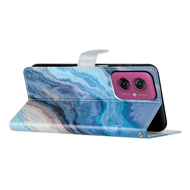 Funda de Cuero para Motorola Moto G55 con Dibujo de Colores (Mármol Azul)