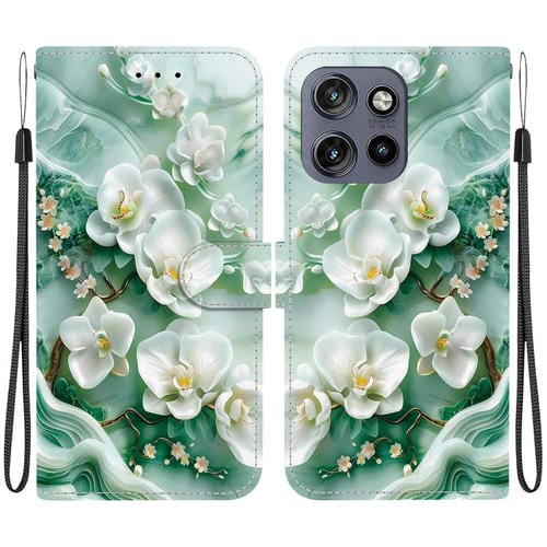 Funda de Cuero Motorola Edge 50 Neo 5G con Dibujo de Colores y Textura de Cristal (Flores de Jade)