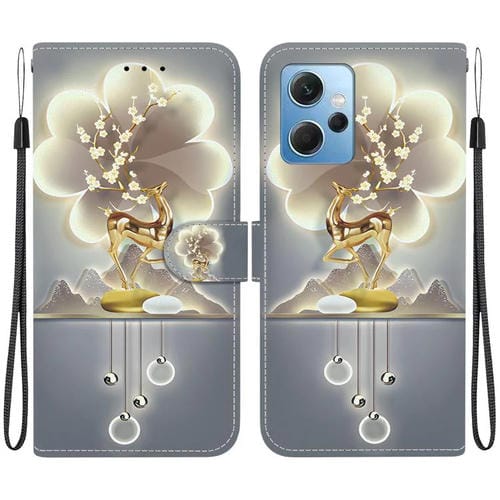 Funda de Cuero con Dibujo de Colores y Textura de Cristal Global para Redmi Note 12 4G (Ciervo Sika)