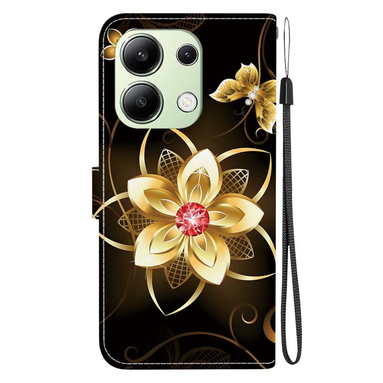 Funda de Cuero con Dibujo de Colores y Textura de Cristal Global para Redmi Note 13 4G (Flor Dorada)